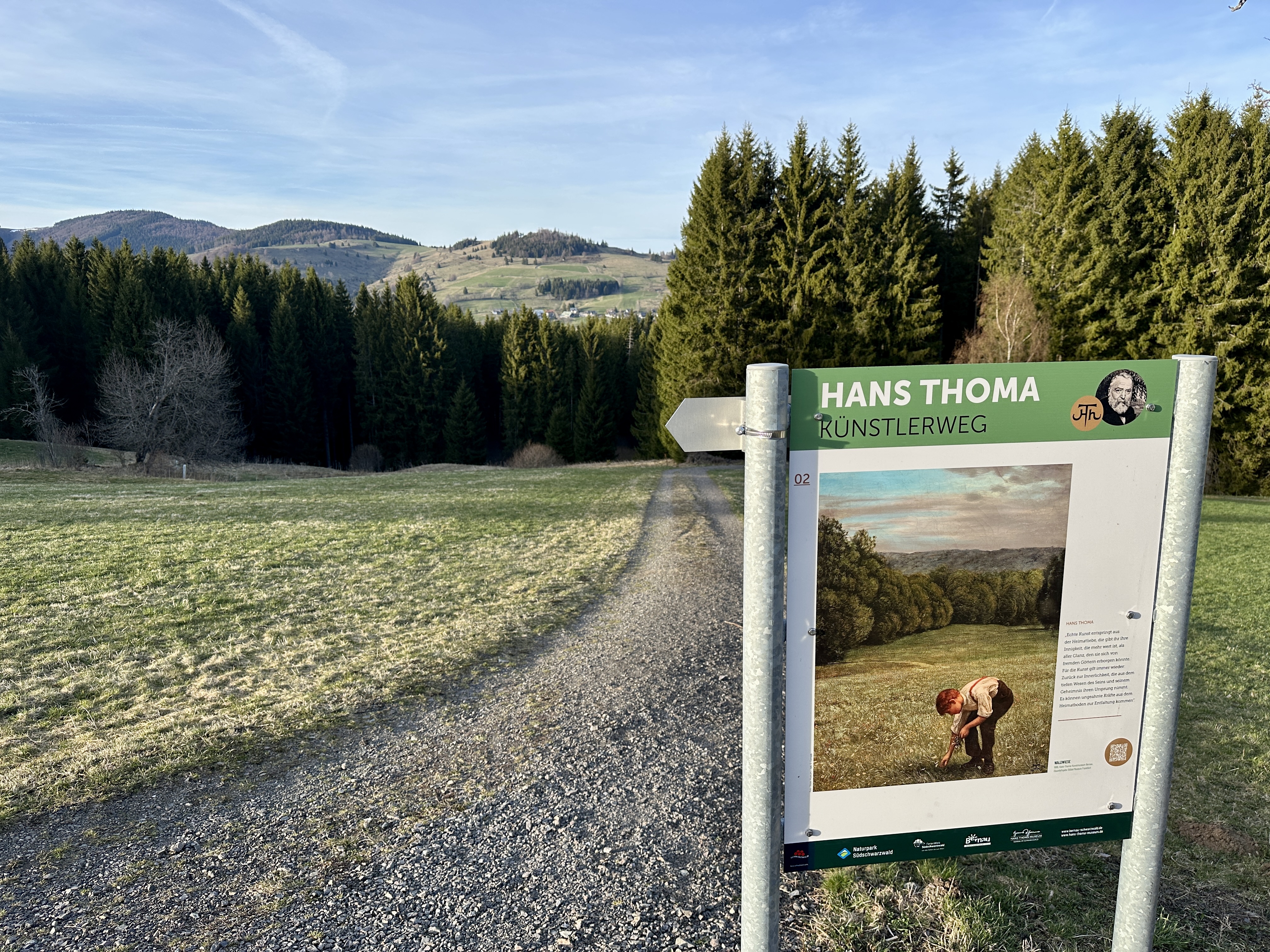 Schöner Blick über das Hochtal in der Abendsonne auf dem Hans-Thoma-Künstlerweg.